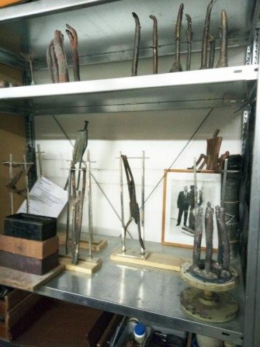 Wozu diese Reihe von Katzenfotos aus einem Kalender? Als Studienmaterial für die Reparatur der halb lebensgroßen Bronzekatze darunter. Schubert erweckte das Sammlerstück mit neuer Tatze wieder zum Leben, und die zufriedenen Besitzer ließen das kaputte Vorbild bei ihm zurück. Er selbst arbeitet gern abstrahiert, und resümiert: „Davon könnte man nicht leben. Man macht das nicht, um jemand zu ärgern, sondern von innen heraus.“ – Doch wenn Kunst von Können kommt, dann ist er immer ein Künstler. Mit vielen Ideen, der am Ende seufzt: „Man kann so viele Sachen machen, aber man wird leider nicht 200 Jahre alt.“