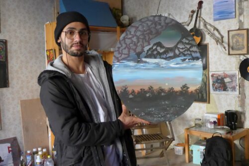 Ahmed Alsaadi war schon früher auf dem Sonnenberg zu sehen, aber fand erst in diesem Jahr nach seiner Anerkennung als Flüchtling einen Raum zum Malen.