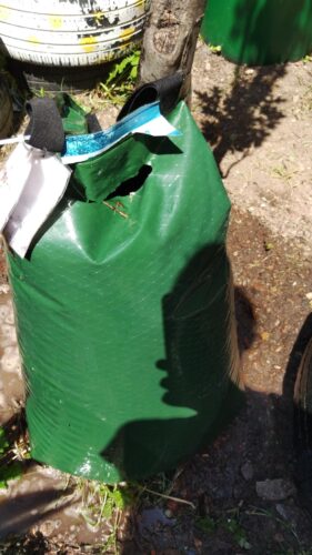 Nun steht uns wohl wieder ein sehr trockener Sommer bevor. Daher gilt es, gerade die jungen (zu erkennen am Holzgerüst) und noch nicht so kräftigen Bäume regelmäßig zu gießen. Am besten geht das mit einem Gießsack.