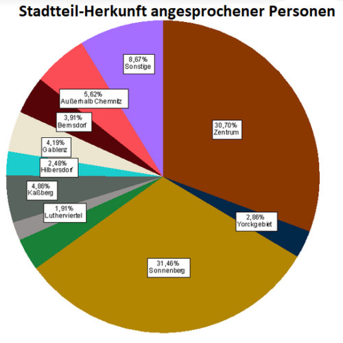 Mit diesem Artikel möchten wir Ihnen eine kleine Übersicht über unsere Arbeit der letzten Jahre geben. Als Projekt sollen wir offene Ohren für die Anwohnerschaft auf dem Sonnenberg und im Stadtzentrum haben sowie bei Problemen helfen. Melden Sie sich also gern, wenn Sie etwas umtreibt! Zudem ist es unsere Aufgabe, Integrationsprozesse zu erleichtern und das gute Zusammenleben im Viertel zu befördern. Dazu führen wir auch Entdeckungstouren über den Sonnenberg durch. Geben Sie das gern an entsprechende Personen weiter, die noch nicht lange hier leben und nach Orientierung suchen.