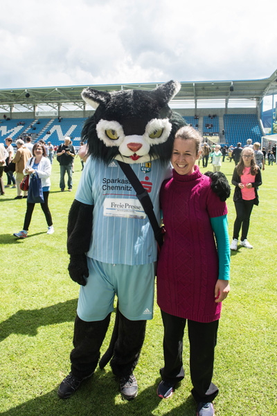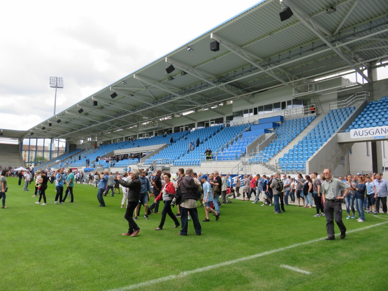 Anschließend eröffnete die Oberbürgermeisterin offiziell das Stadion und die Chemnitzer strömten ins Innere, während 5.972 blaue und weiße Ballons aufstiegen.