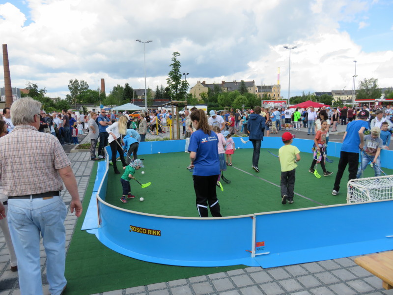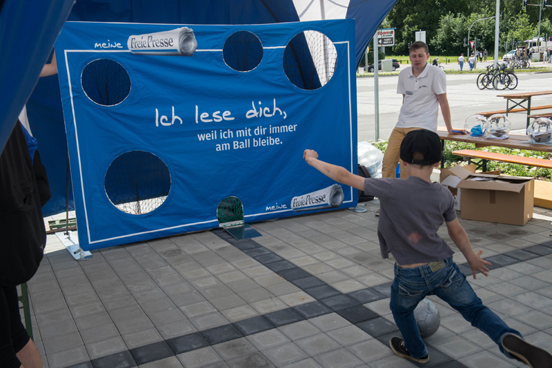 Auf dem neuen großen Parkplatz vor dem Hauptgebäude sorgten den ganzen Tag zahlreiche Sportvereine für ein abwechslungsreiches Rahmenprogramm für groß und Klein, u.a. Bubbleball, Bogenschießen, Basketball, Floorball, Torwandschießen, Teppich-Curling.