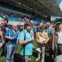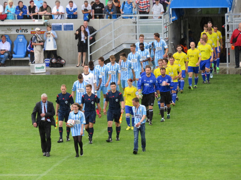 Nach der Präsentation der Mannschaft für die Saison 2016/2017 auf der Haupttribüne gaben sich im Innenraum der Fahnenläufer des CFC und seine künftige Frau das Ja-Wort.