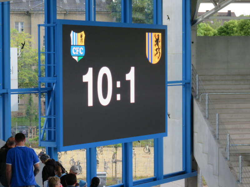Krönender Abschluss war das Spiel des CFC gegen eine Stadtauswahl, bestehend aus je einem Spieler der 28 Vereine des Kreisverbandes, darunter auch eine Spielerin. Das Ergebnis von 10:1 war eigentlich Nebensache, aber der Ehrentreffer der Stadtauswahl wurde von allen enthusiastisch gefeiert.