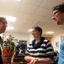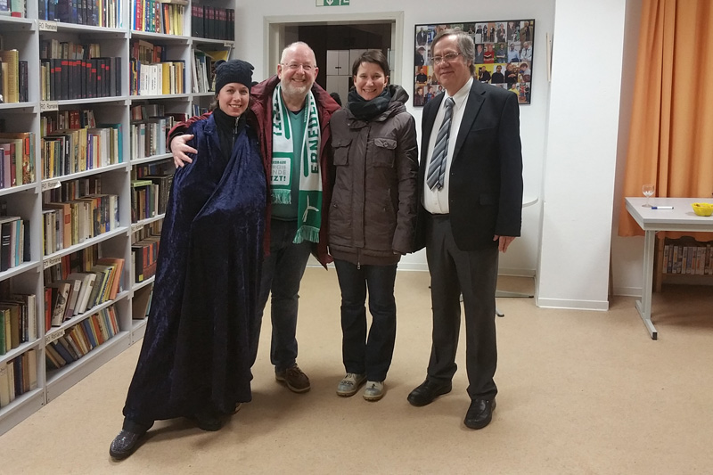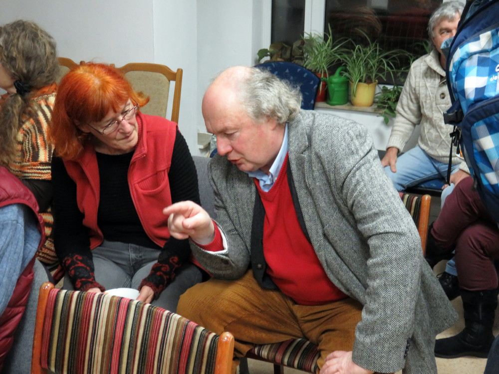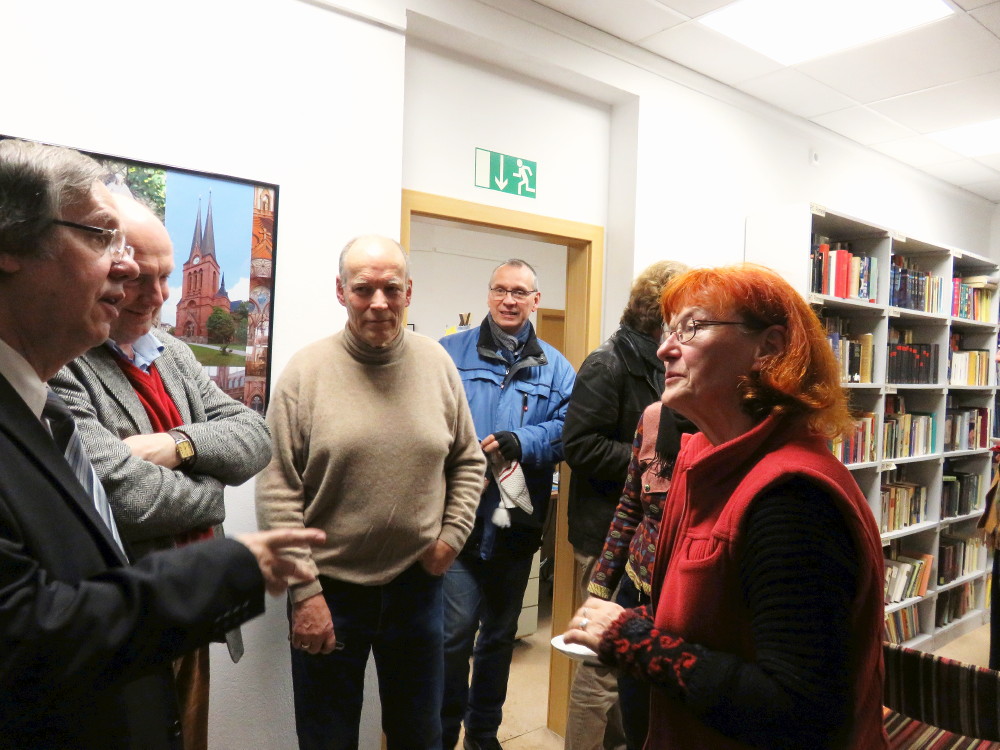 Im Bürgerzentrum ist die Ausstellung bis zum 31. März zu sehen. Und findet dort weitere Fans. Hier hat Hellfried Malech sie der früheren Journalistin Farah aus Lybien gezeigt.