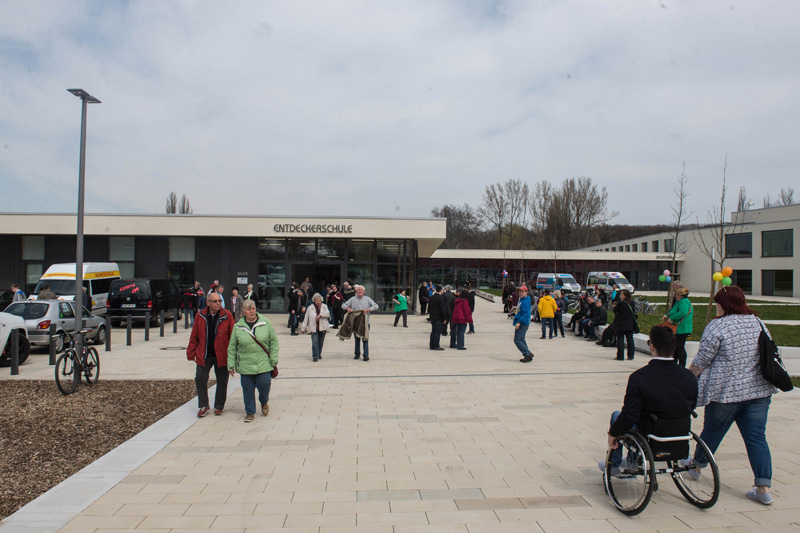 Ein Jahr lang nutzen die körperbehinderten Schülerinnen und Schüler den neuen Campus an der Heinrich-Schütz-Straße. Am 11. März zum Tag der Offenen Tür kam ein prominenter Gast.