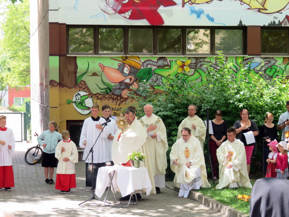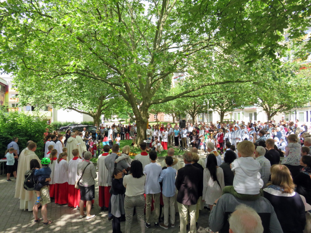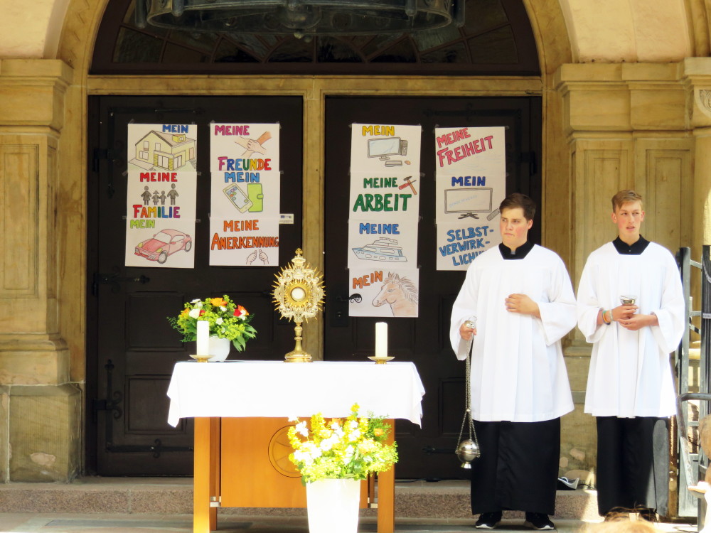 Festlich und fröhlich feierten die katholischen Gemeinden den Fronleichnam. Nahtlos schloss sich das schon traditionelle Seifenkistenrennen an.