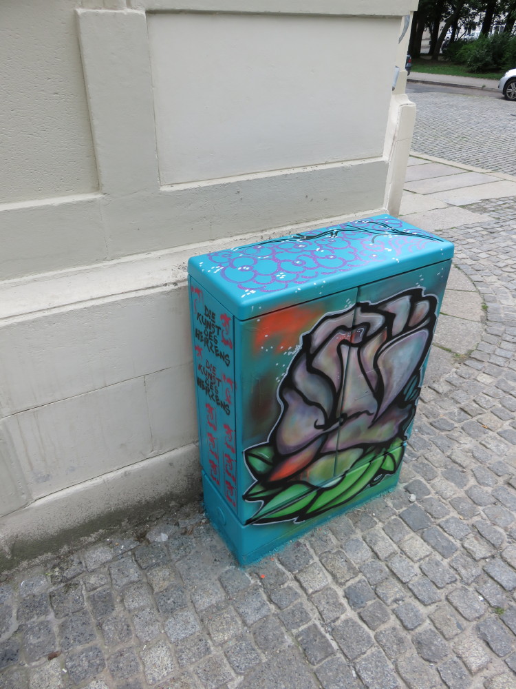 „Die Kunst des Herzens“ – Benjamin Sprunk – gestaltete wie schon im Herbst 2016 mit vielen begeisterten Kindern Elektrokästen rings um den Lessingplatz bunt.