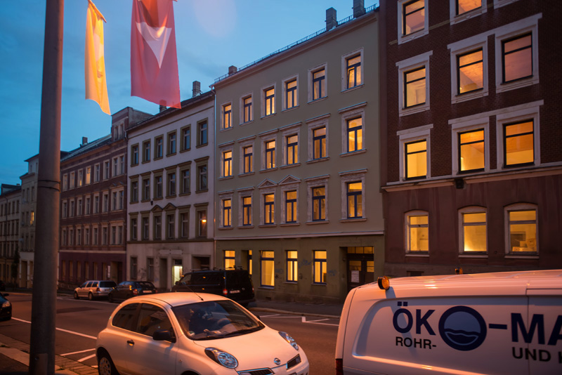 Für die Dialogfelder hat er die sonst so dunkle Zietenstraße lebendig aufscheinen lassen.