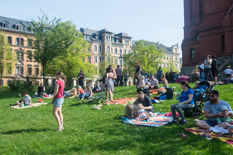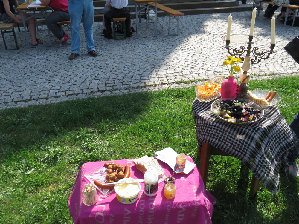 Das Buffet quoll über vor mitgebrachtem Essen, Bänke und Wiese füllten sich mit Leuten aus dem Stadtteil und darüber hinaus, die dem Aufruf gefolgt waren.