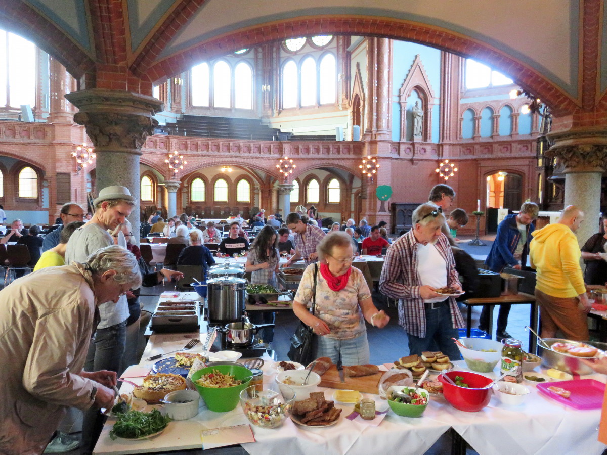 Das erste „kulinarische Festival der Kulturen in der Markuskirche“ weckte den Wunsch auf eine Wiederholung. Danke an alle, die mitgekocht und mitgegessen haben!