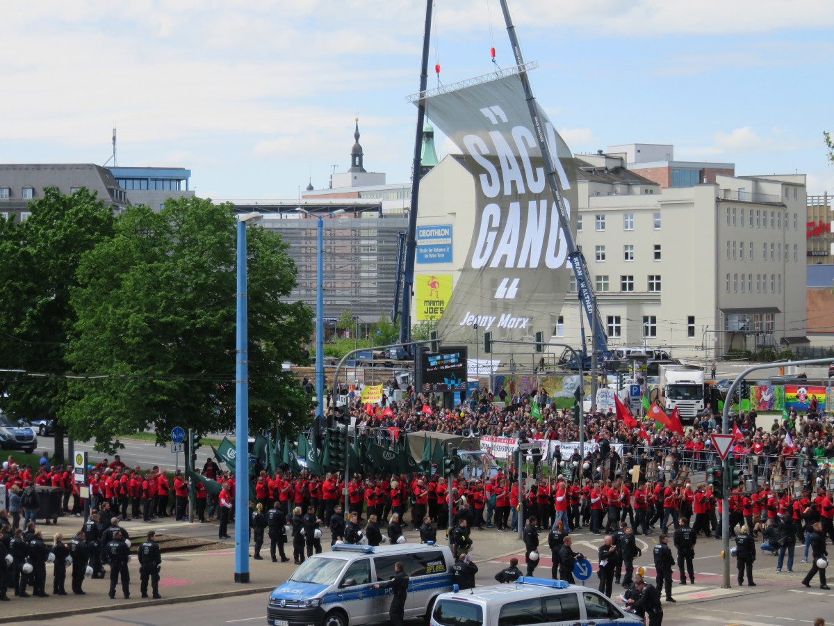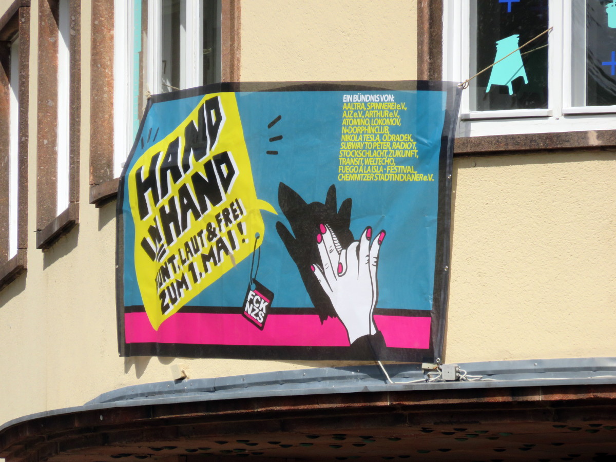 Lange vorbereitet, war der 1. Mai bei uns ein ereignisreicher Tag. Eckart Roßberg, von dem die allermeisten Fotos hier stammen, und viele andere waren unterwegs. Um gegen die Vereinnahmung unseres Viertels durch die rechtsextreme Partei III. Weg zu zu protestieren und um die Ereignisse festzuhalten. Nicht zuletzt war es eine wichtige Gelegenheit, den „bunten Sonnenberg“ auch nach außen darzustellen. Viele nutzen dazu die vorbereiteten Plakate.