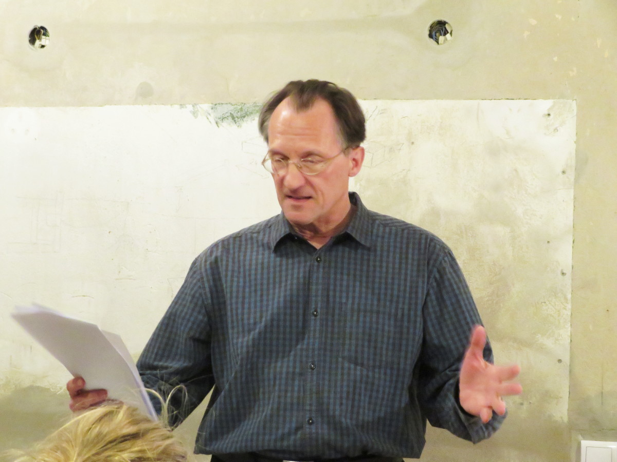 In seinen Bildern, Grafiken und Collagen setzt sich der junge spanische Künstler mit dem Thema „Geld“ auseinander. Nachdem Anatoli Budjko die ca. 30 Interessierten begrüßt hatte, beschäftigte sich Eske Bockelmann, der zur Zeit an der TU Chemnitz lehrende Germanist und Altsprachler, in seiner Lesung passend zur Ausstellung ebenfalls mit dem Phänomen Geld „GELD – BETRACHTUNGEN ZU EINER ÜBERMACHT“ – Geld regiert die Welt, wie zeigt sich seine Herrschaft, was sehen wir vom Geld, was ist sein Wert..?