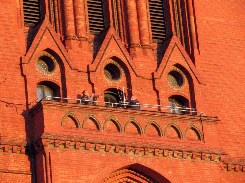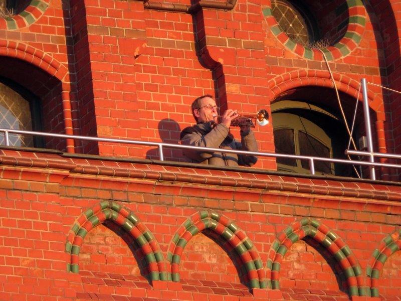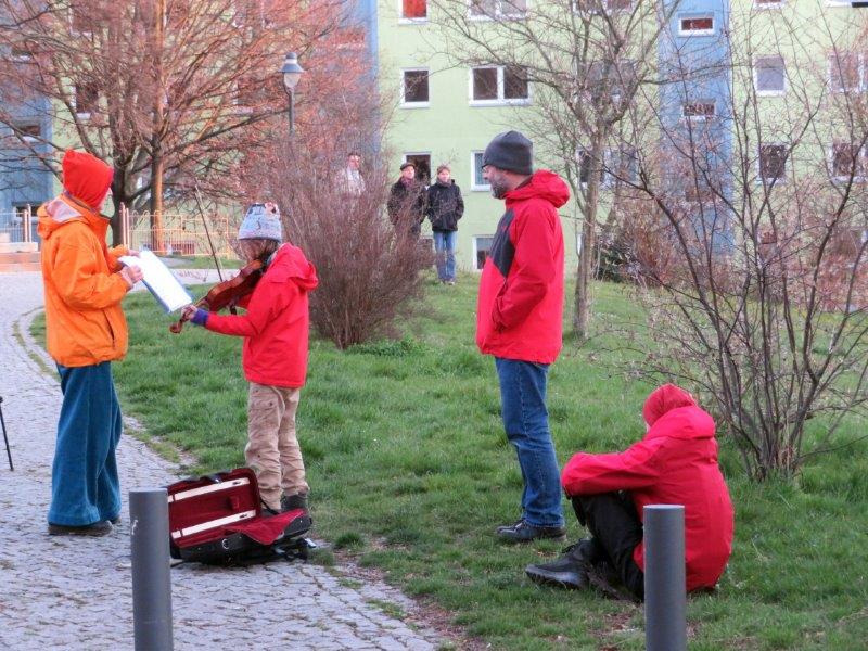 Gabriele und Eckart Roßberg berichten: „Wir waren heute Abend an der Markuskirche und haben uns an der Darbietung der „Ode an die Freude“ erfreut. Es war ein schönes Erlebnis. Erst vom Balkon der Markuskirche ein Trompeter mit Zugabe, dann eine kleine Geigerin, dann ein Klavier aus der Pestalozzistraße 1 und noch einmal die kleine Geigerin mit einer Zugabe. Und ein dankbares, sogar ökumenisches, Publikum – mit entsprechendem Abstand untereinander.“