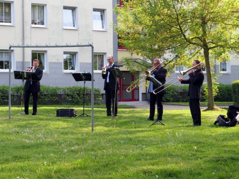 Beginnend an der Yorckstraße machte das Bläserquartett als nächstes Station zwischen der Würzburger und der Paul-Gerhardt-Straße.