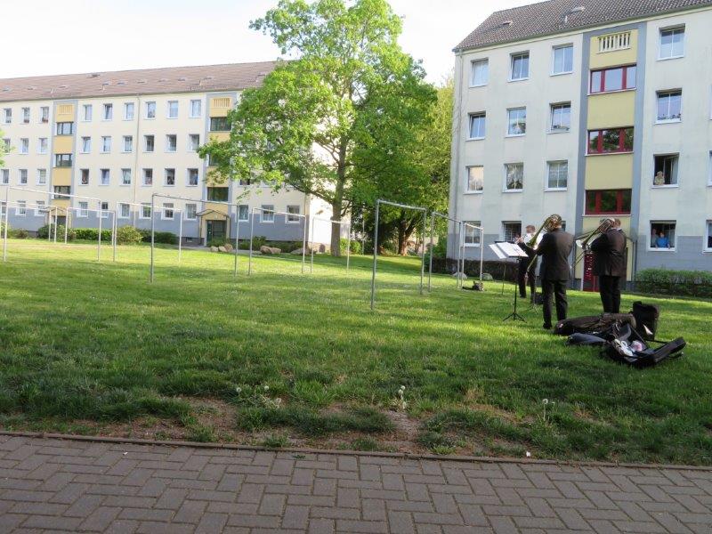 „Ännchen von Tharau“ und „When I’m 64“ hörten Mieter der SWG vor ihren Balkonen. Großer Applaus!