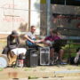 Dann zog die Band weiter zur Würzburger Straße 46. Dort bot sich die Treppe vor der stillgelegten alten Kaufhalle als besondere Bühne an. Auch hier erklang ein abwechslungsreiches Programm unter anderem auch mit einem polnischen Volkslied, sowie mit „Go down Moses“, „Love Me Tender“ von Elvis Presley und „Don’t Let Me Down“ von den Beatles. Hier erfreuten sich ca. 25 Große und Kleine an der Musik und spendeten immer wieder Beifall.