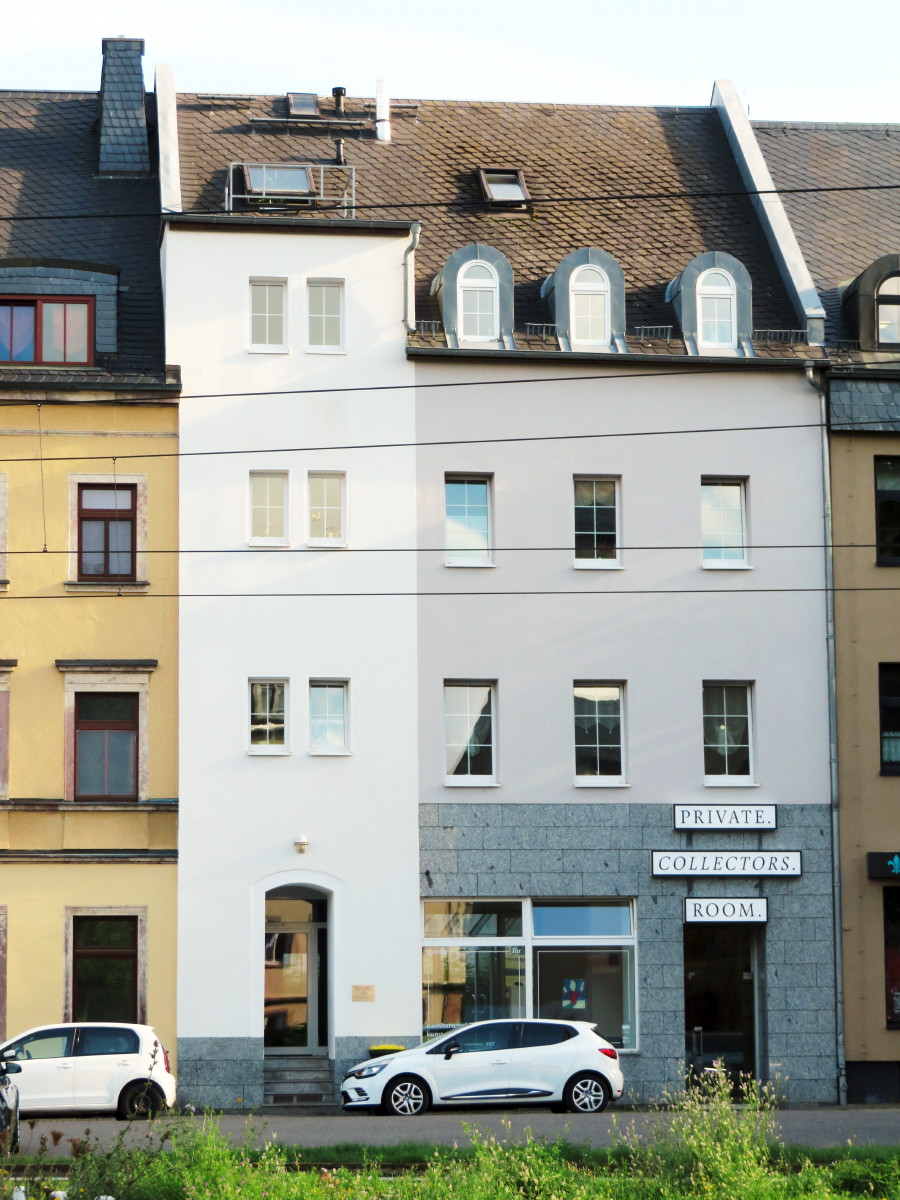 Als ich dann da war und Johannes Specks die Werke zeigte, verstand ich dann langsam. Es geht um einen dauerhaften Erwerb nicht gegen Geld, sondern im Tausch gegen die Geschichte, und das wiederum ist Teil des künstlerischen Projekts. Auch Mandy Knospe erklärte mir anschaulich, wie sie mit den finanziellen Mitteln aus dem Gegenwarten-Kunstprojekt in ihrem Umfeld zur Beteiligung aufgerufen hatten und so die Werke erhalten hatten. In dem Haus gegenüber dem Lokomov wurde die Galerie eingerichtet.