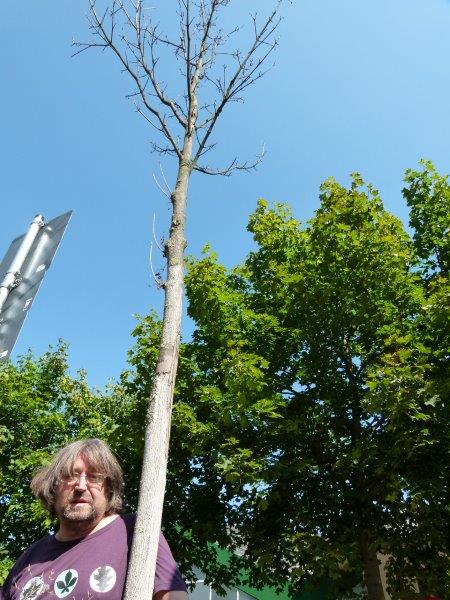 Doch solche private Hilfe reicht nicht. „Im Mai waren von den 153 Straßenbäumen hier 21 deutlich geschädigt, jetzt sind es 31“, hat er gezählt. Das summiert sich auf 240.000 Euro Schaden. „Außerdem fällte letztes Jahr der Orkan große Bäume.“