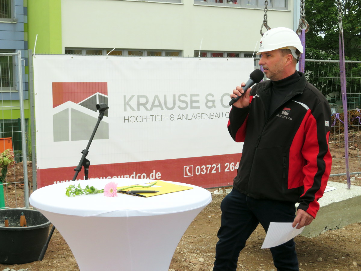 Im Beisein von Baubürgermeister Michael Stötzer, Vertretern der Stadtverwaltung Chemnitz, des Stadtteilmanagements, der Sächsischen Aufbaubank und verschiedener Planungsbüros sowie Vertretern der bisher beteiligten Baufirmen und Unternehmen wurde die Grundsteinrolle als Zeitkapsel mit aktuellen Zeitzeugnissen sowie Plänen und Informationsmaterial zum Bauwerk eingebracht.