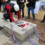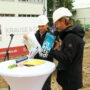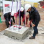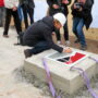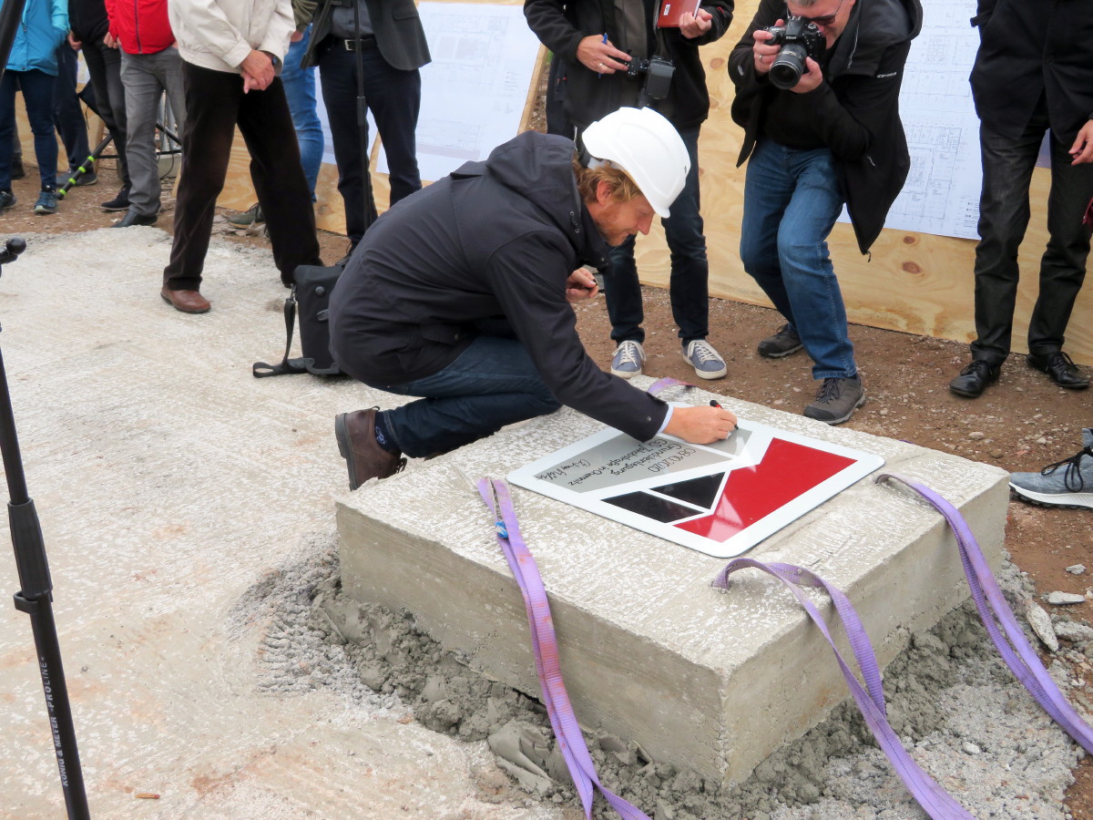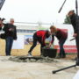- Christian Müller versenkt die-Grundsteinrolle in den Grundstein