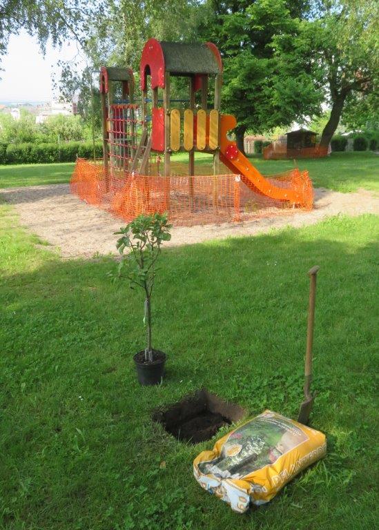 Die Kinder der Kita „Schatzkiste“ und der „Villa Sonnenblick“ hatten den neuen Oberbürgermeister zu Gast.Der hatte zu seinem Amtsantritt ein Apfelbäumchen geschenkt bekommen. Aber da er selbst keinen Garten habe, wollte er es in einer Kita pflanzen.