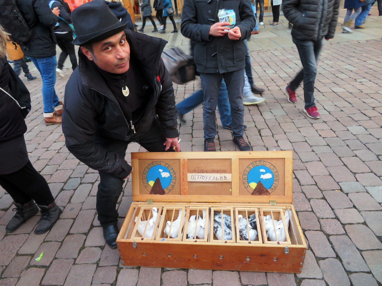 - Adel Matar mit seinen Friedenstauben, Foto: Eckart Roßberg