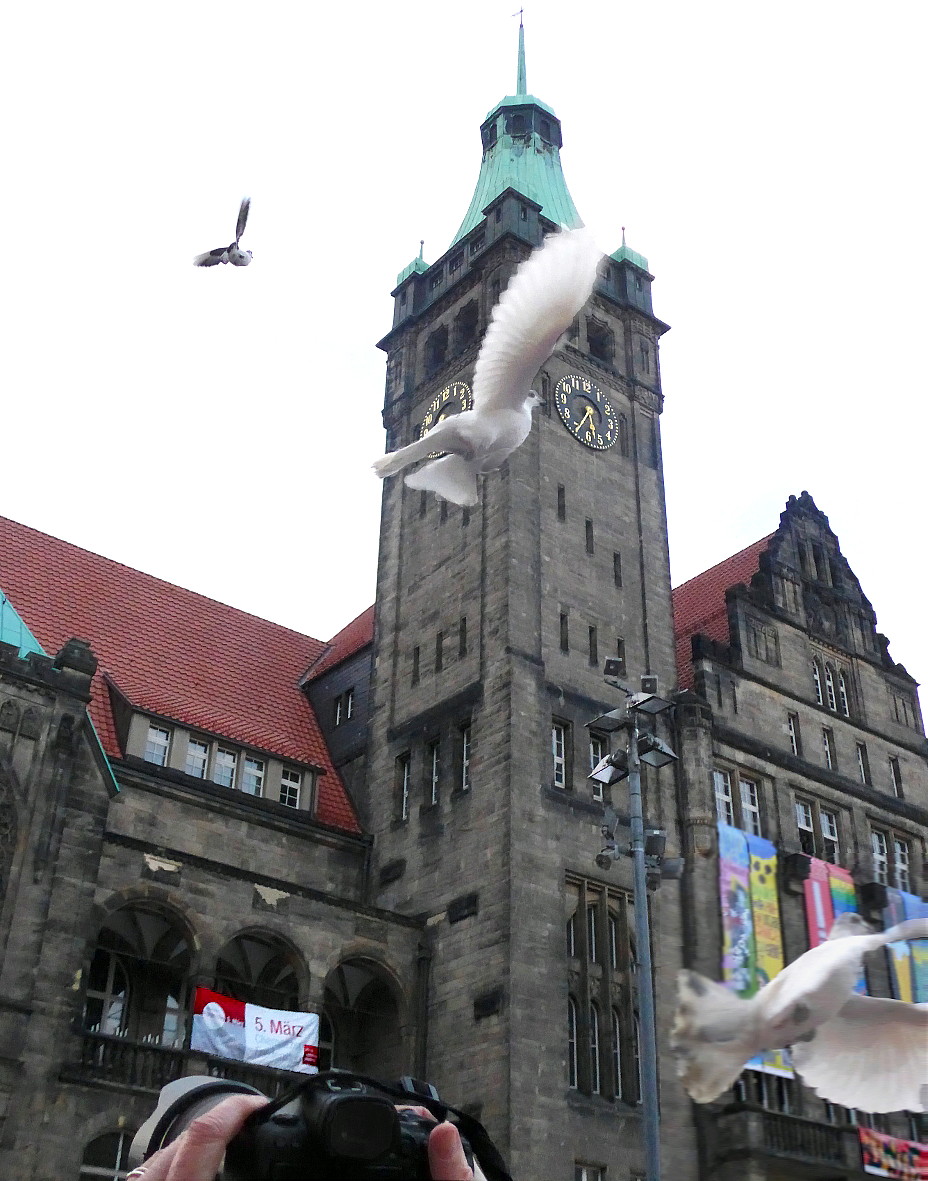 - Friedenstauben vor dem Rathaus, Foto: Stephan Weingart