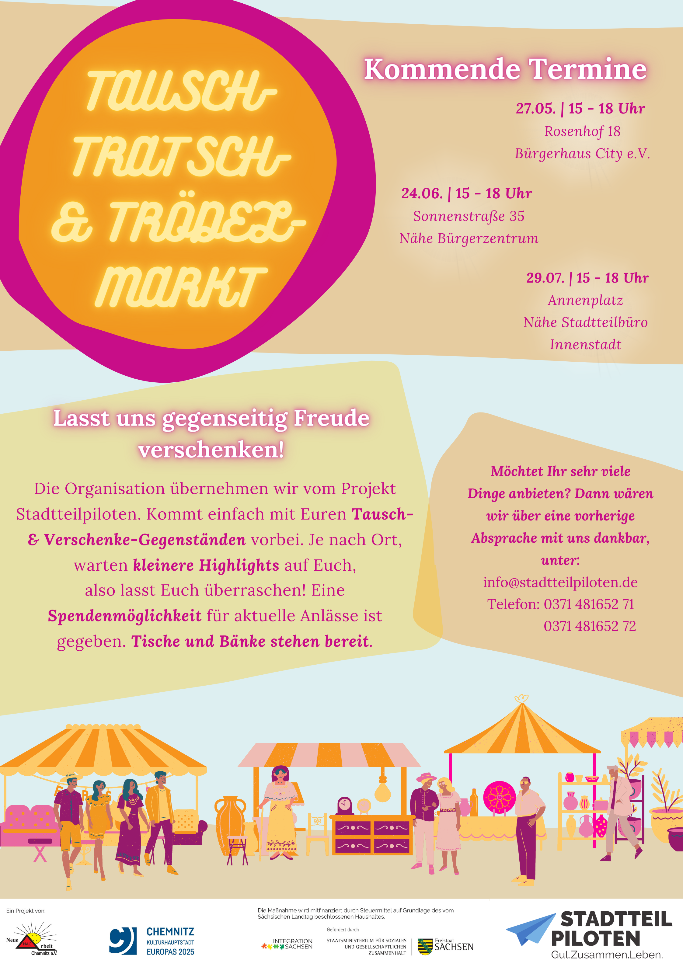 Wieso also nicht einfach beim Tausch-, Tratsch- und Trödelmarkt verschenken und dafür vielleicht etwas interessantes von jemand anders mitnehmen?