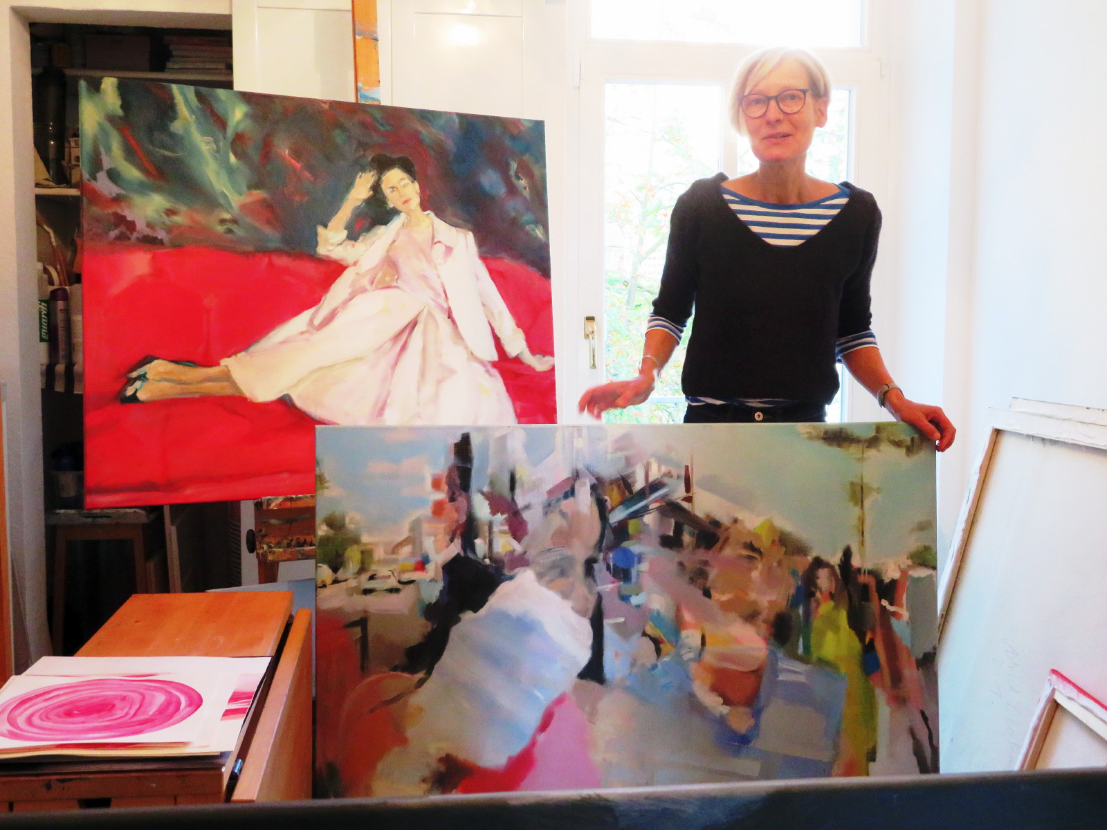 In ihrer Atelier-Wohnung zeigte sie uns Bilder in verschiedenen Techniken und Formaten.