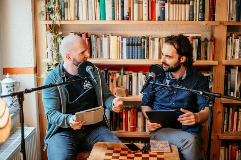 - Alexander Senf und Alexander Büttner (v.l.n.r.) bei der Lesung im KaffeeSatz, Foto: aquileria.de