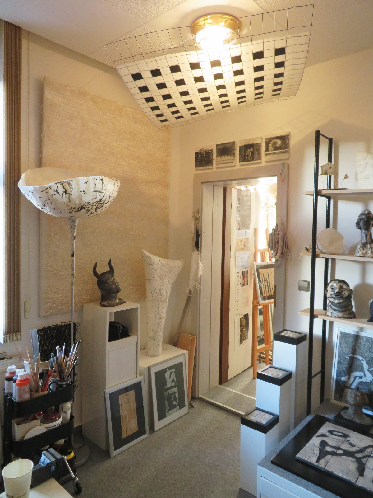 Simone Michel ist enorm vielseitig: Neben Keramiken gehören Malerei/Grafik, Lichtobjekte, Plastiken/Marionetten, Schmuck/Objekte zu ihrem Repertoire.