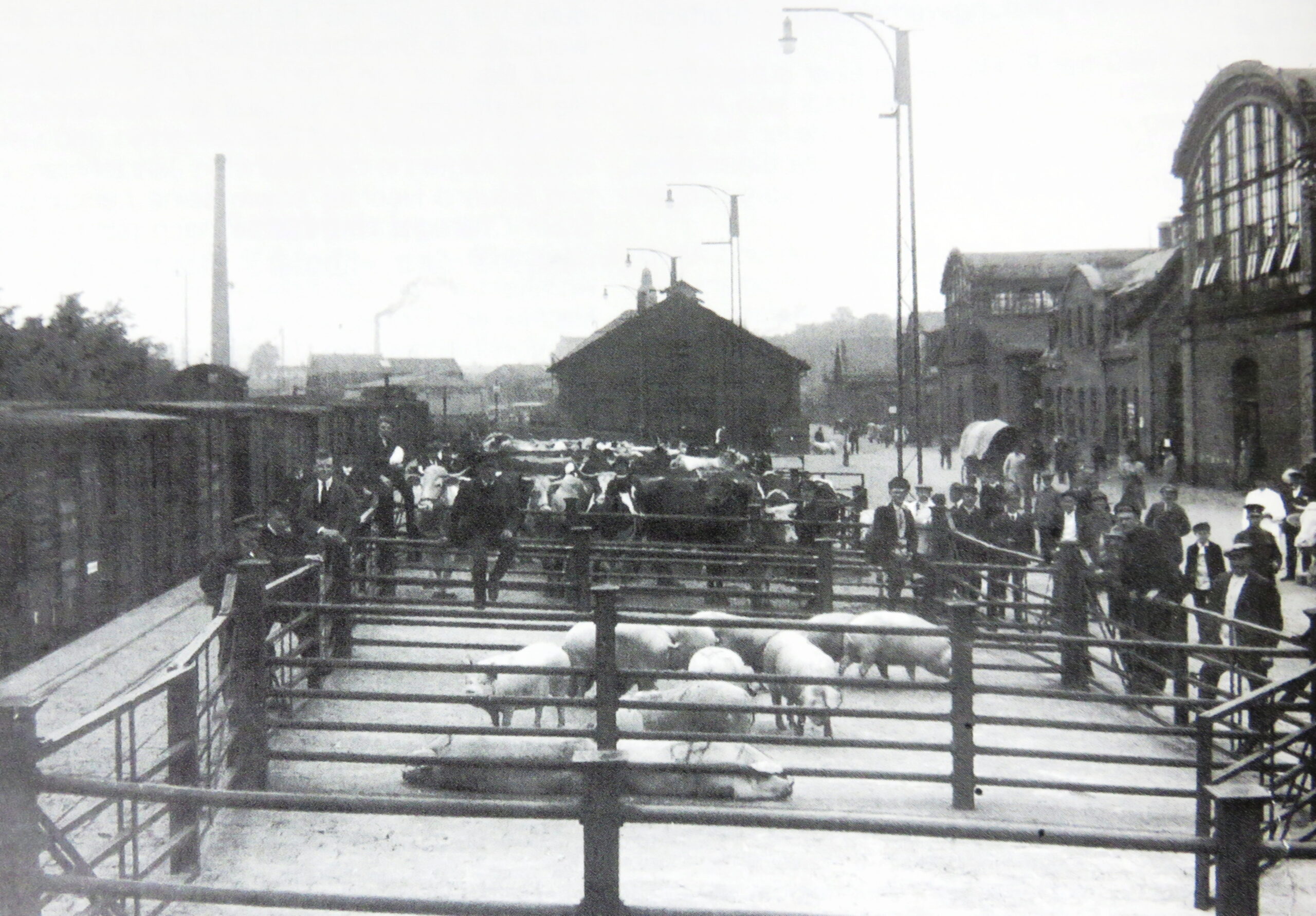 - Viehhof mit Eisenbahnanschluss (links) um 1900 | Sammlung Eckart Roßberg
