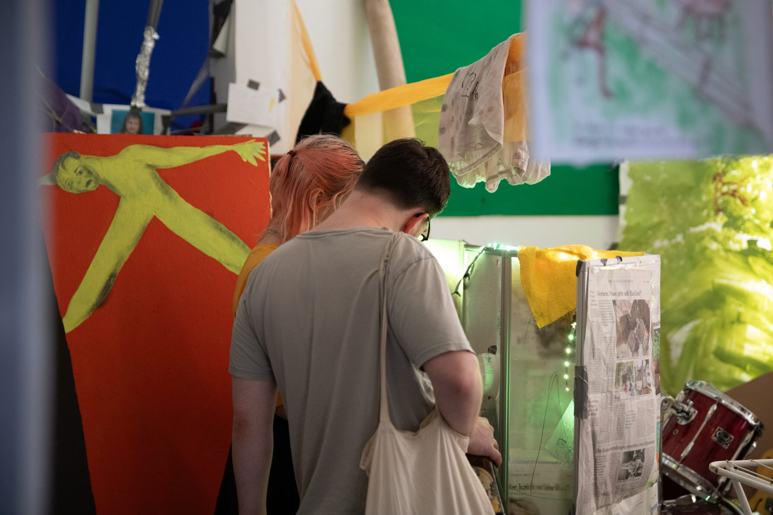 Die Arbeiten von Jens Ausderwäsche und Laurin Maximilian Erdmann wurden aneinandergeprellt und waren gezwungen in Dialog gesetzt zu werden und von Beobachtern in Kommunikation in neue Kontexte gesetzt zu werden.