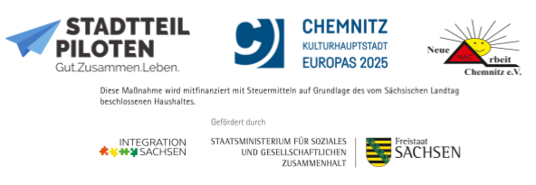 Die Beteiligung an gesamtstädtischen oder stadtteilspezifischen Veranstaltungen, wie beispielsweise dem Hang zur Kultur, den Lichtpunkten, der Eröffnung der interkulturellen Wochen, dem Kiezweihnachtsmarkt oder die Teilnahme an den gesamtstädtischen Einwohnerversammlungen sind ebenfalls Bestandteil unserer Arbeit und bieten uns gute Möglichkeiten unser Projekt vorzustellen und mit Euch ins Gespräch zu kommen. Auch die kooperative Mitwirkung an Projekten und Veranstaltungen anderer lokaler Träger trägt dazu bei. So haben wir bspw. am Projekt „identeco“ von inpeos e.V. mitgewirkt. Oder aber auch gemeinsam mit unter anderem der AWO Chemnitz und dem Kinder- und Jugendhaus „UK“ sowie gefördert durch die Kulturhauptstadt Europas Chemnitz 2025 gGmbH das Mikroprojekt „Stadt am Fluss – eine interaktive Stadtrallye“ an den Start gebracht.