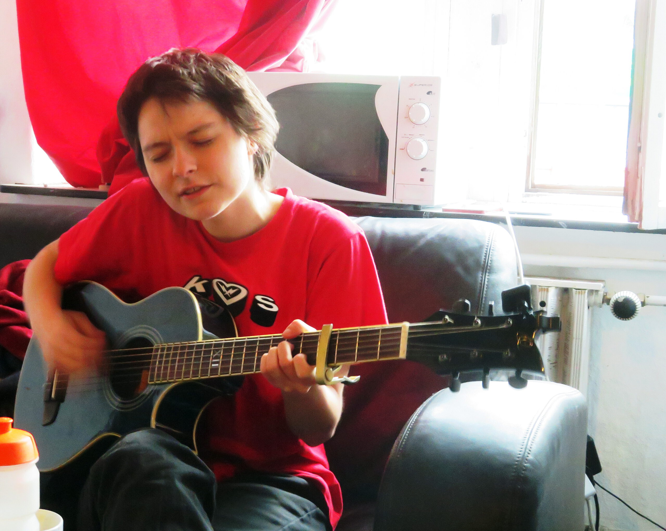 Sie arbeitet im Stadtteil und wohnt inzwischen auch dort, „in einer kleinen gedämmten Wohnung, ganz spießig“. Aber zuerst war der Sonnenberg fürsie fremdes Land. Im Sommer 2018 holte der damalige Stadtteilmanager René Bzdok sie mit „Baumarkt“ zu einem Auftritt auf den Lessingplatz. Sie erinnert sich an die anderen Acts, „einen Opa mit Gitarre, eine singende Familie – ein kauziger Stadtteil!“ Danach war danach zum Beispiel bei Performances auf dem südlichen Sonnenberg beteiligt.