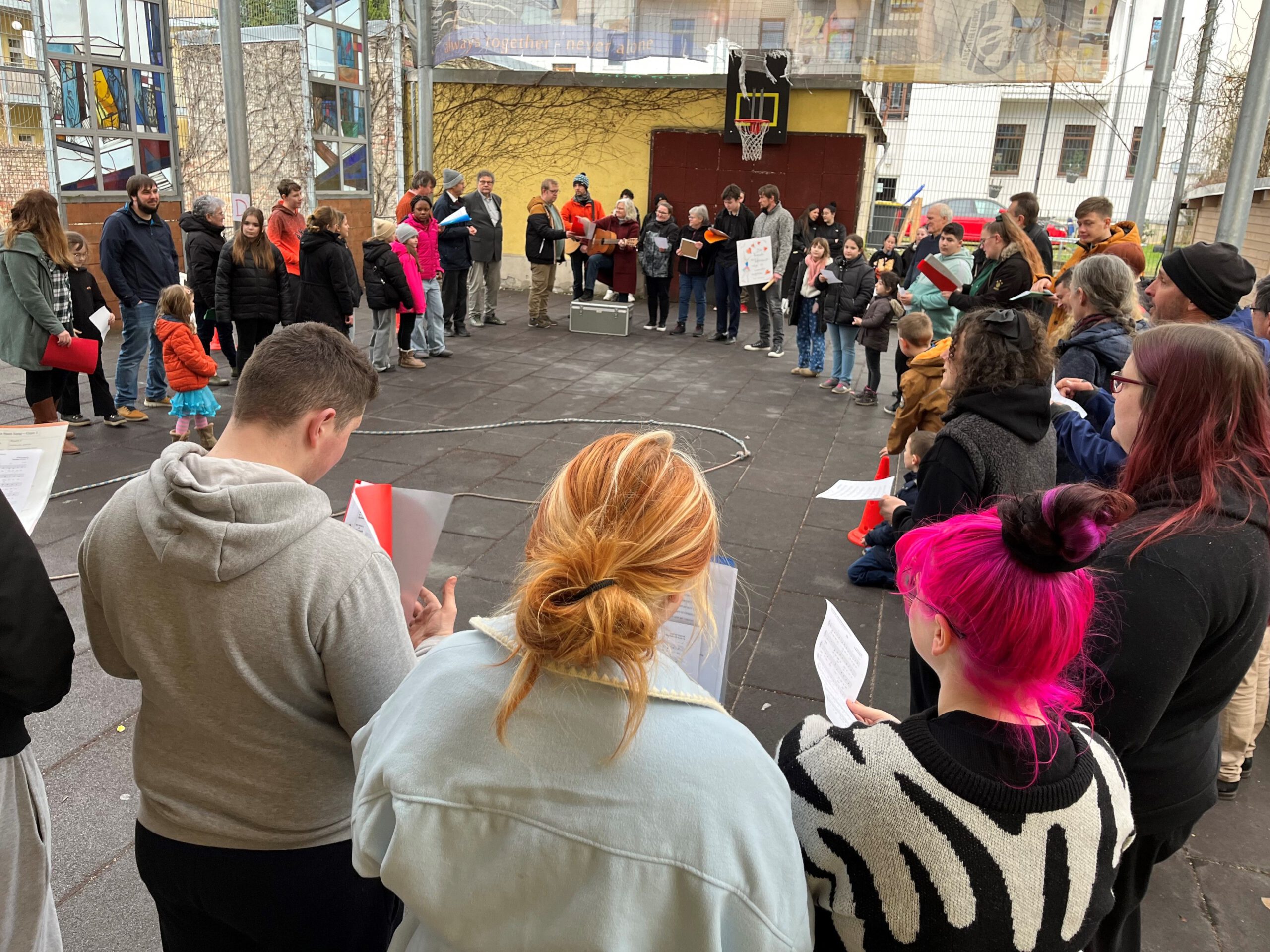 Rückblick – Januar 2025: Nein, nicht Moskau, sondern Chemnitz. Zum Abschluss des diesjährigen Don Bosco-Festes versammelten sich alle Gäste auf der mit roten Matten ausgelegten Aktionsfläche des Don Bosco Hauses, um die langjährige Ressortleiterin Dana Hubert (l.) zu verabschieden und deren Nachfolger Ingo Gebhardt (r.) willkommen zu heißen. Während es die bisherige Leiterin zukünftig als Schulsozialarbeiterin in eine Förderschule nach Burgstädt zieht, kommt ihr Kollege aus der entgegengesetzten Richtung.