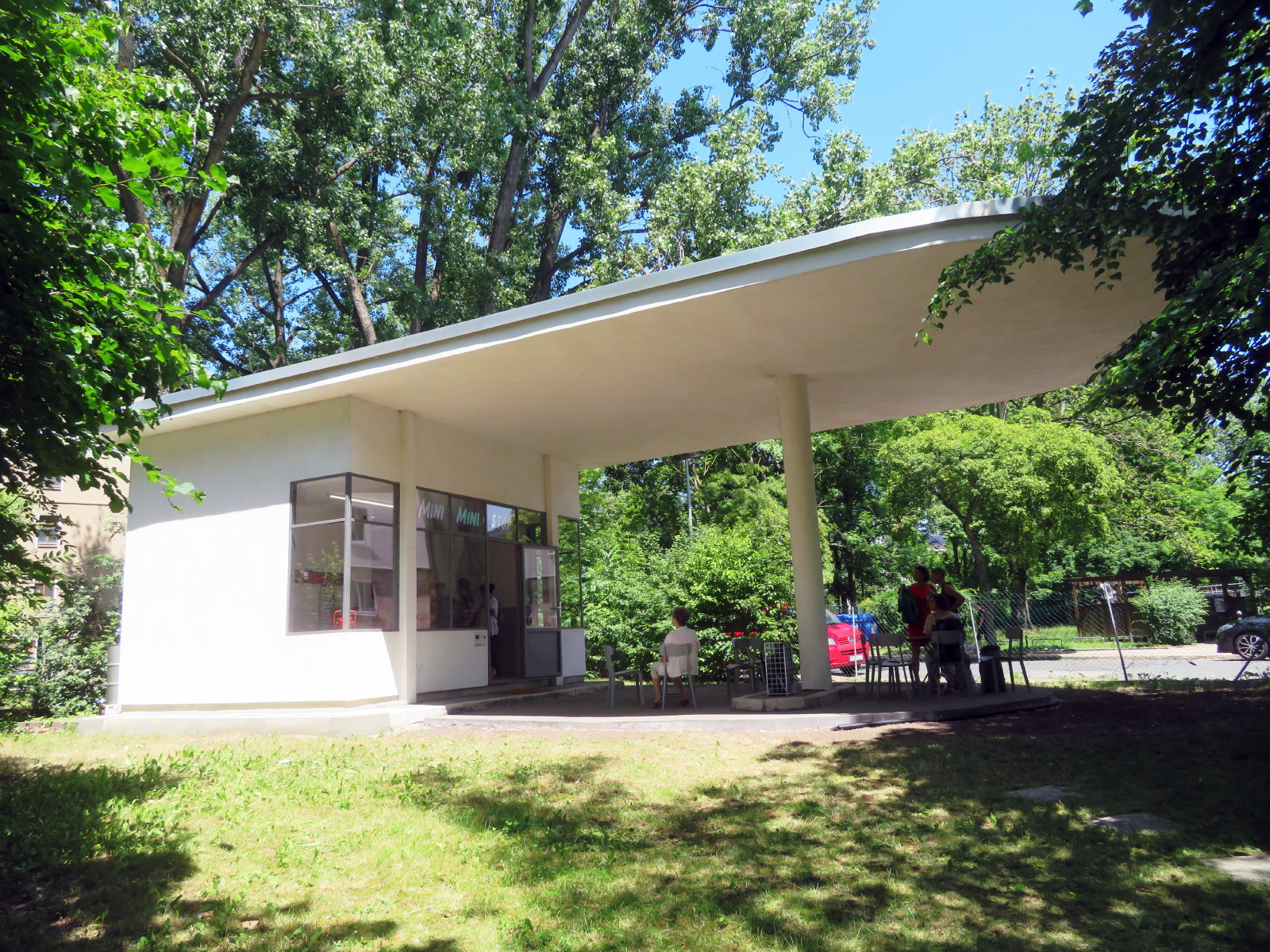 Unter dem Tankstellendach, von schattigem Grün umgeben, konnte man kleine Köstlichkeiten genießen: