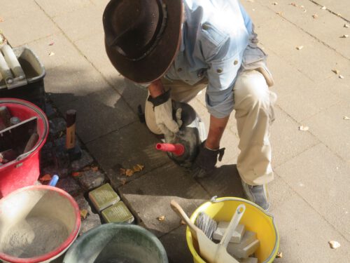 Gunter Demnig beim Verlegen der Stolpersteine auf der Würzburger Straße 25