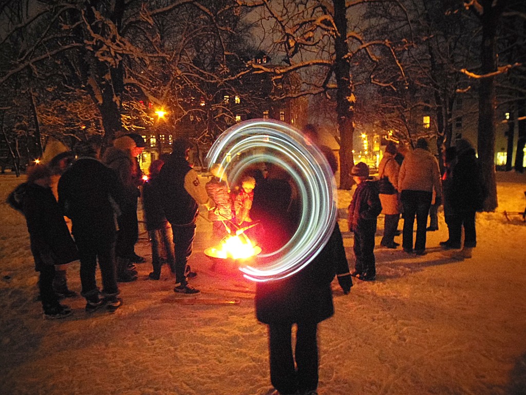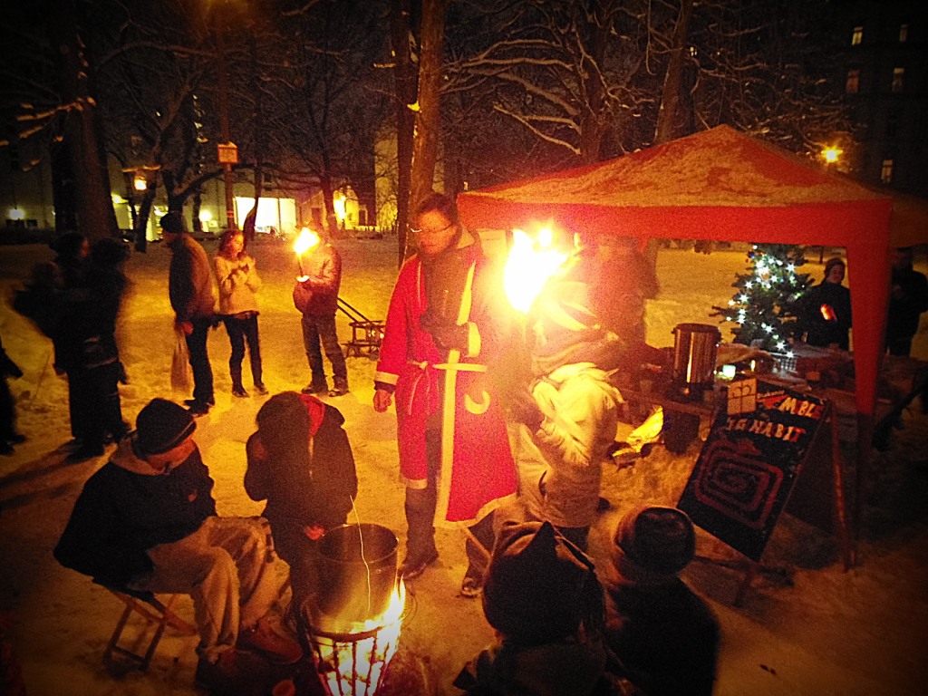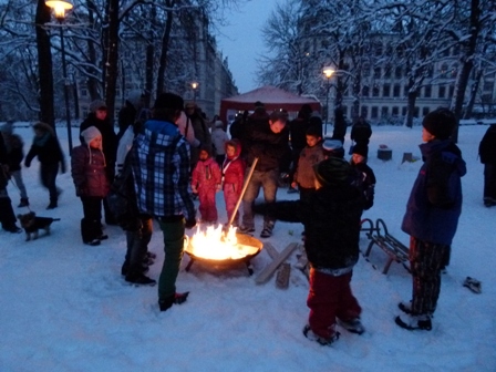 Unter dem Motto „Licht an! Weihnachten“ waren Kinder, Eltern und alle Anwohner am 12.12.12 auf den Lessingplatz eingeladen. Bei Frost und tiefem Schnee ließen sie sich vom Feuer wärmen und feierten mit dem Weihnachtsmann.