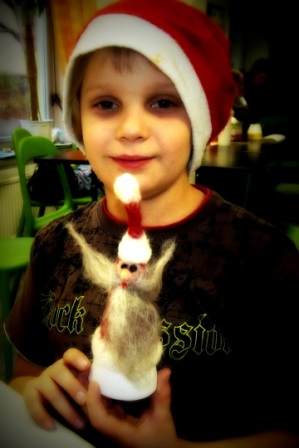 Bei der nachmittäglichen Adventswerkstatt waren alle Sonnenberger eingeladen. Viele nutzten die Gelegenheit, etwas zu basteln, ein Geschenk für die Eltern oder Großeltern. Filzen, schöne Seifestücke, eine Tasse oder Weihnachtskugeln und -kerzen selbst gestalten – es waren besondere und individuelle Dinge, die hier entstanden. Auch die Erwachsenen waren begeistert und taten mit.“