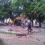 Am 30. Juni standen schon die Geräte, der Platz wurde tiefer ausgebaggert.