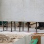 - Haltestreben werden im Beton befestigt