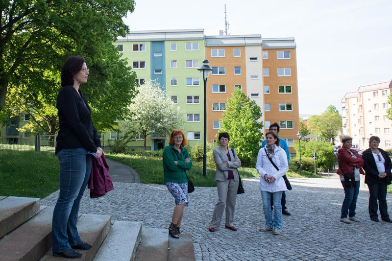 Zum Tag der Städtebauförderung am 9. Mai konnten verschiedene Projekte und Objekte auf dem Sonnenberg besichtigt werden. Die Führung begann um 10 Uhr mit der Markuskirche, ging weiter mit dem Bürgerzentrum und den Villen auf der Dresdner Straße, der Ausgrabungsstelle „Fenster in die Erdgeschichte“ und endete mit dem Co-Working-Space in der Zietenstraße. All diese Entwicklungen und Baumaßnahmen wurden mit Mitteln der Städtebauförderung in dieser Form erst möglich.