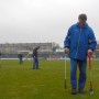 Das Foto zeigt den neuen Objektwart Heiko Helbig und seine Crew bei der Arbeit am Rasenplatz.