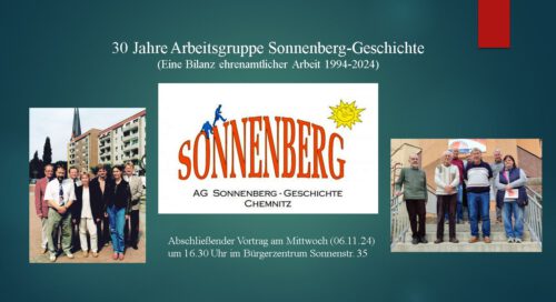 Vom einstigen Gasthof „Zur Goldnen Sonne“ ist der Name unseres Stadtteils abgeleitet – so lag es nahe, dass ein von der AG Sonnenberg-Geschichte herausgegebenes Buch diesen Titel erhielt. Mit dieser Lokalität fing auch alles an. Lassen sich doch ihre Ursprünge bis in die Zeit vor dem Dreißigjährigen Krieg zurückverfolgen. (mehr …)