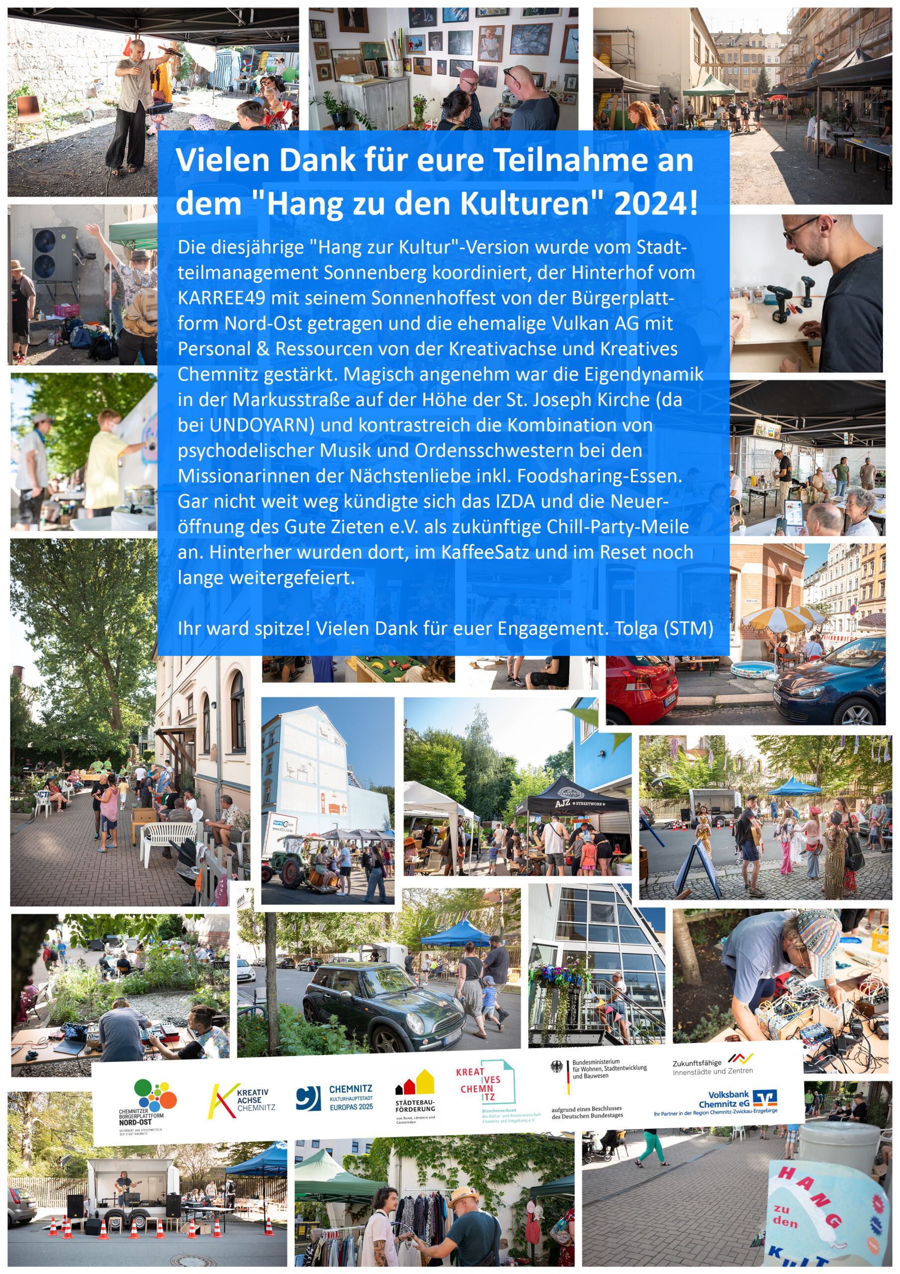 Wisst ihr, was 2024 für mich das schönste Erlebnis war? Nicht der Rekord beim Frühjahrsputz mit 600 Beteiligten aus der Soziokultur – ob Schulen, Kindergärten, Wohlfahrtsverbände oder kleine Vereine. Nicht das Sommerfest Hang zu den Kulturen oder der doppelt bis dreifach so gut besuchte Kiezweihnachtsmarkt. (mehr …)